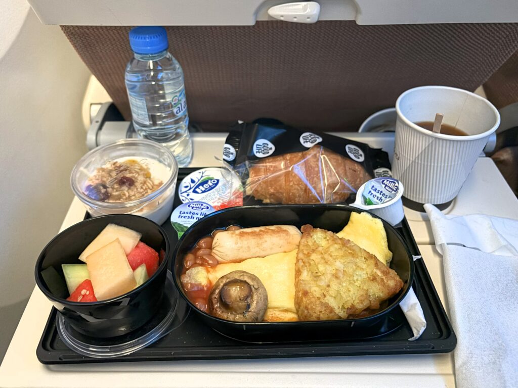 出発から6時間15分で機内食。(到着が7時25分なので朝食)