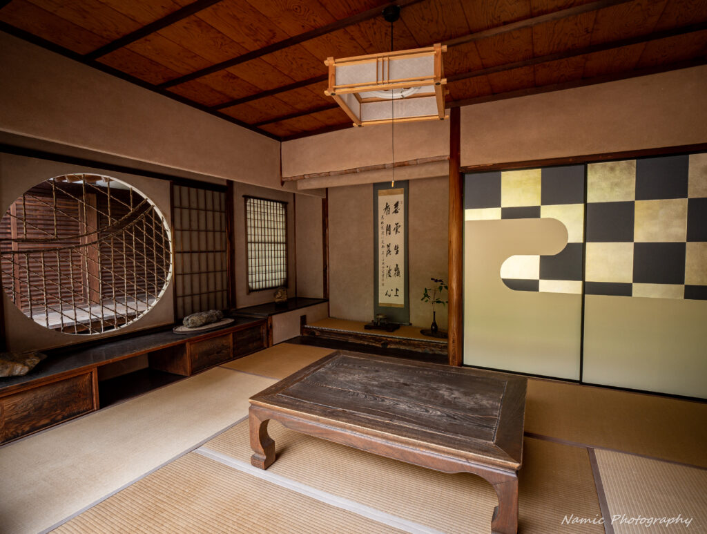 撮影スポット①:前庭・雲嶺庭を望む丸窓